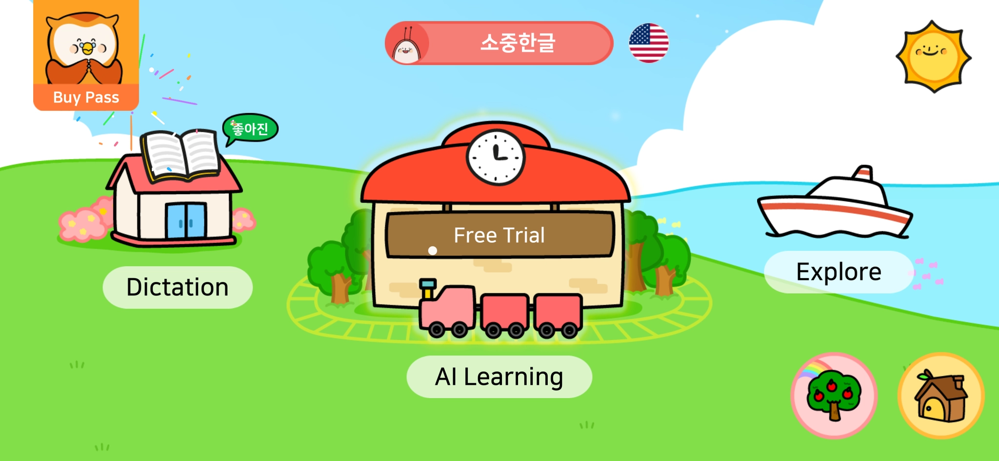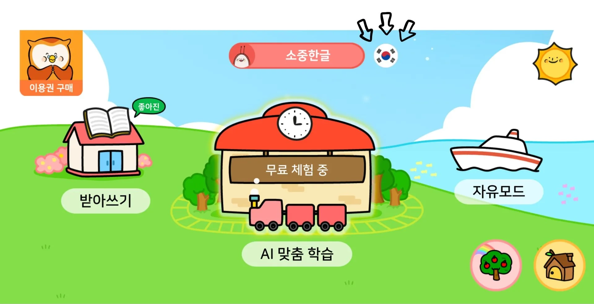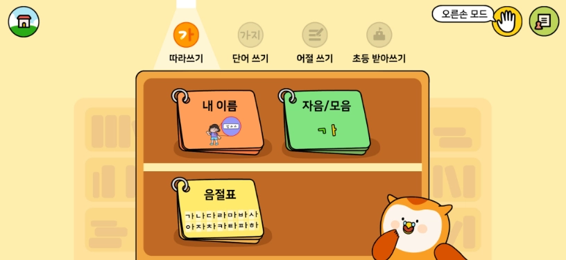소중한글은 3가지 학습 메뉴와 동기 부여 기능으로 구성되어 있습니다.