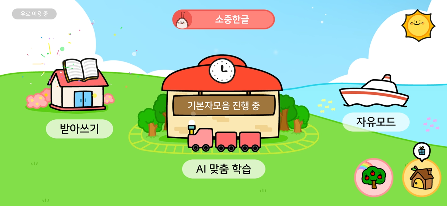 소중한글은 크게 아이의 한글 수준을 파악하는 ‘진단 테스트'와 ‘AI 맞춤 학습'으로 이루어
