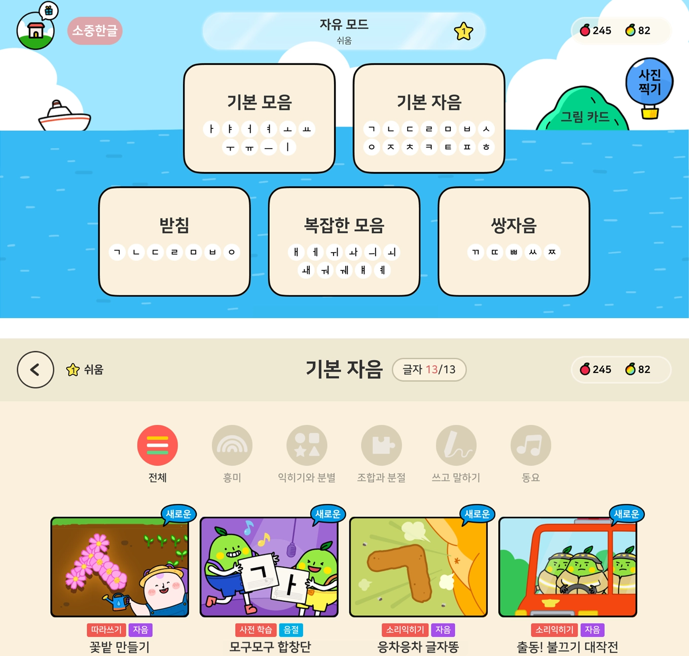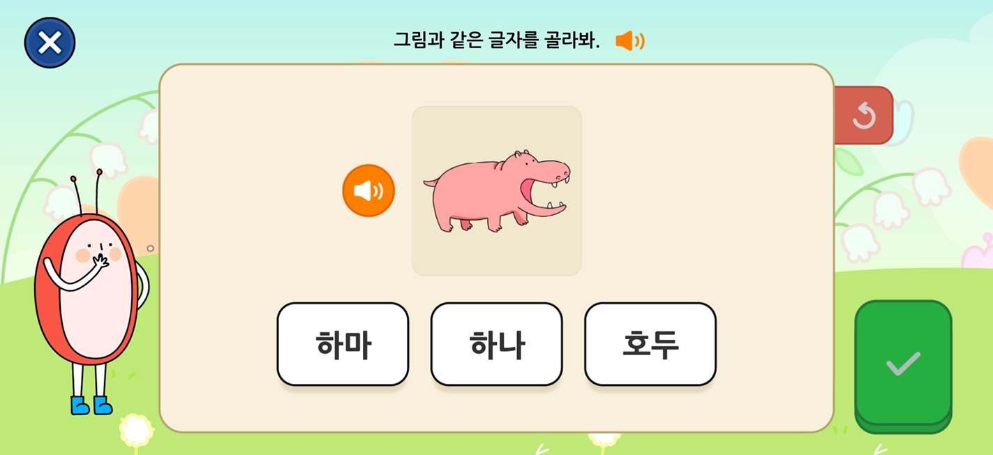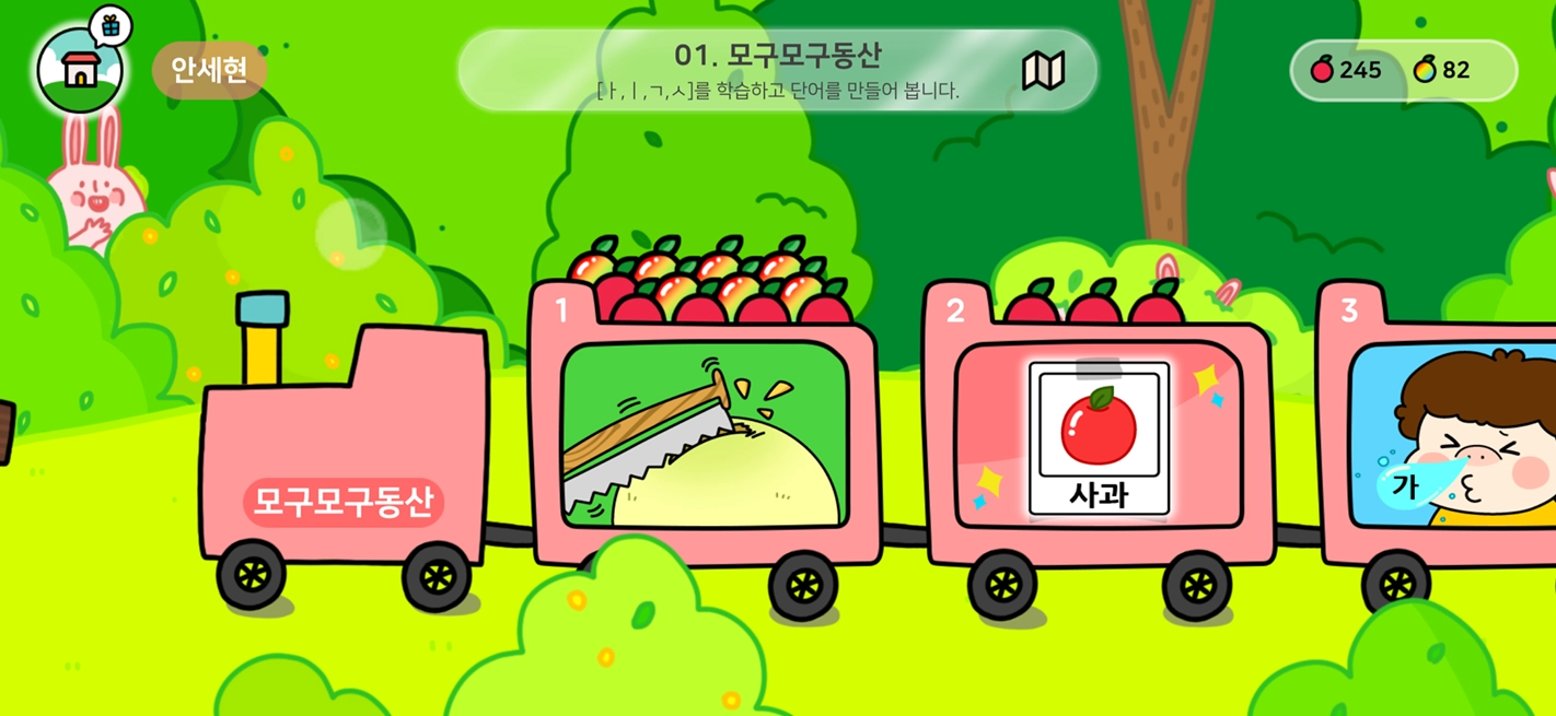 200개의 한글 게임이 학습 목표에 맞게 순차적으로 진행