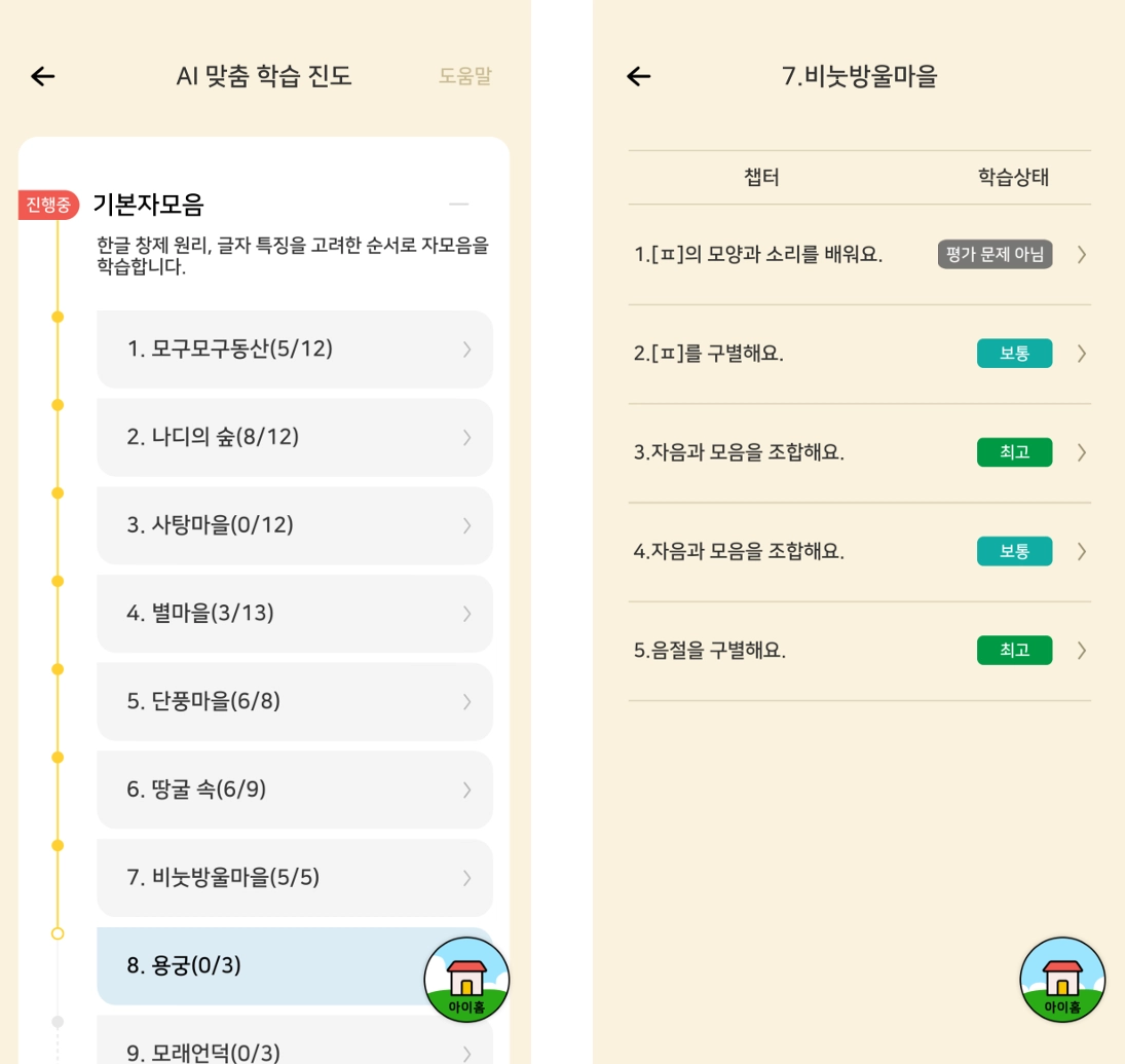 학습을 할 때마다 받는 사과를 모아 나의 집을 꾸미는 기능